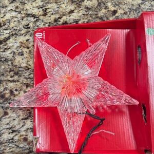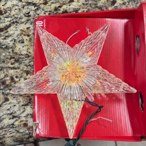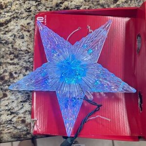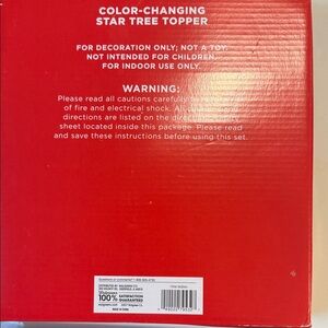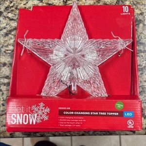 Illuminate your holiday decor with the Color-Changing Star Tree Topper. This stunning star features vibrant color-changing LED lights, adding a magical touch to your tree. Perfect for creating a festive atmosphere. Includes extra bulbs and plastic thing (see picture) to make it easy to place on top of tree. Indoor use.