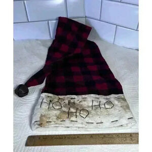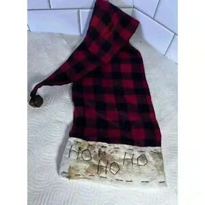 Christmas Tree Topper Santa Claus Hat Red Buffalo Plaid - 3 Foot Long Ho Ho Ho
