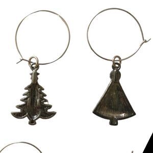 Christmas Tree Wine Glass Markers Charms Set Of 6 Rhinestones Enameled Metal.