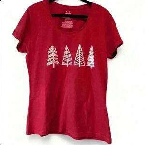 Christmas Trees Women's Red Graphic T-Shirt Size medium