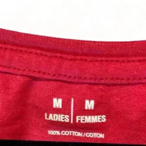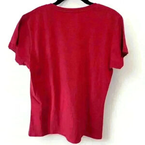 Keywords: Christmas, holiday, women's t-shirt, red, graphic design, casual, winter, short sleeve, crew neck, cotton, breathable, festive, machine washable, pre-owned.