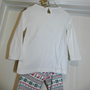 The tunic set is complete with a gorgeous pair of ivory cotton spandex leggings covered with a pretty Fair Aisle pattern of festive red and green.