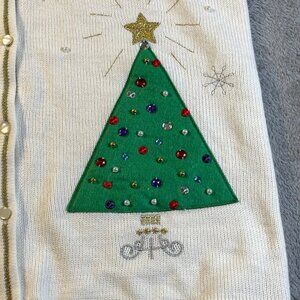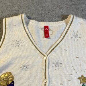 Christmas Ugly White Vest L 12-14 Holiday Sweater Vest Embellished Button Down