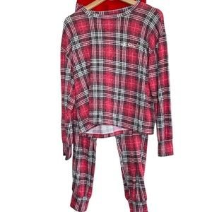 Christmas VS PINK red plaid pajamas with rose gold spell out logo size small