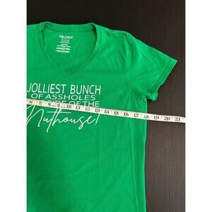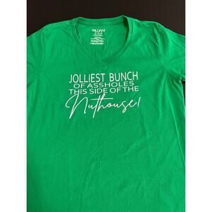 Worn once last Christmas. Women’s green graphic t-shirt.