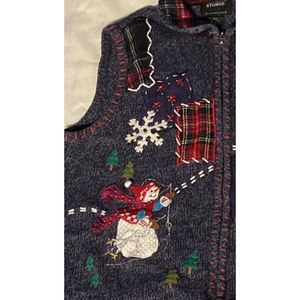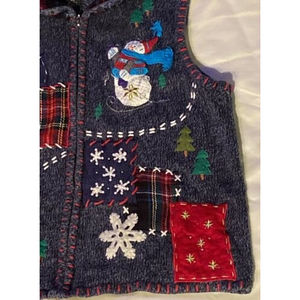 Christmas Vest Designers Originals Studio L Ugly Sweater Snowman Blue Patchwork