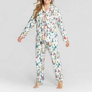 Christmas Village Cotton Flannel Print (2) piece Pajama Set XL