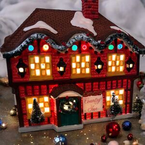 Christmas Village Country Inn Porcelain Lighted House Fortune Island 6 1/2" Tall