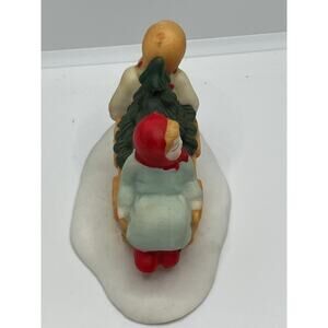 Christmas Village Figures Children Carrying Christmas Tree Wheelbarrow Boy Girl