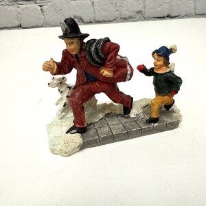 Christmas Village Figurine Fireman, Boy, And Dog By Rite Aid