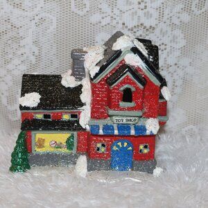Christmas Village Toy Shop w/hole in base for light hand-painted beautiful