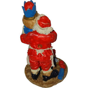 This vintage Christmas figurine depicts Santa Claus and his elves making toys for the holiday season. The colorful ceramic figurine stands at a medium size and is hand-painted with intricate details. The figurine is perfect for collectors, adding to a festive holiday display, or as a gift for someone who loves the holiday season.
