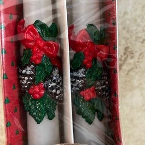 Christmas Vintage Taper Holiday Embossed Candles NOS