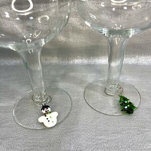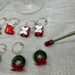 Christmas Wine Blown Glass Markers Set of 12 Handcrafted Glass Charms