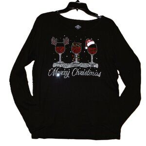 Custom made to order Christmas Wine Glasses rhinestone bling black long sleeved round neck shirt featuring a stunning vividly colored rhinestone design with lots of sparkle. If you like unique bling, this is the shirt for you. Also available in a Vneck, please message me if you prefer a Vneck.