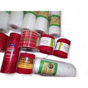 Get ready for the holidays with this festive ribbon lot. Includes decorative mesh, burlap, plaid and snowflake ribbons, perfect for adding a touch of Christmas cheer to your wreaths, trees, or gift wrapping. Vintage package of bead garland. All are unopened.