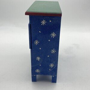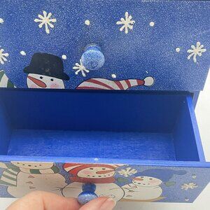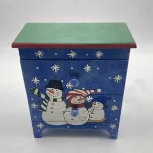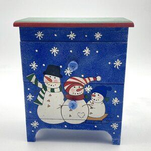 Christmas Winter Snowman Jewelry Box Trinket Storage 2 Drawer Wood Chest Blue