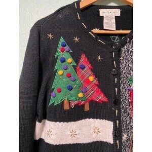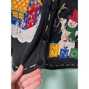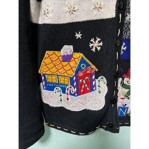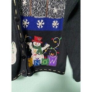 Christmas Winter Snowman Tree Black Sweater Size Large