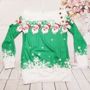 Christmas Women Jumper Sweater Off Shoulder Long Sleeve Pullover Top Sweatshirt
