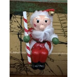 Christmas Wooden Self Stick 2 Stocking Hanger Holders Santa Vtg 1981