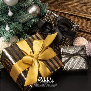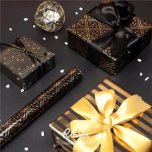 🧿【RANG OF USE】Black paper with metallic gold pattern perfect for Christmas and Birthday gift wrapping.