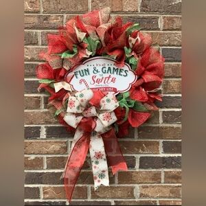 One of a kind- it was designed with a wreath form and adorned with a Santa Naughty List Christmas sign, This item is perfect for anyone looking to add a unique touch to their holiday décor. So why wait? Add this beautiful wreath to your collection and enjoy the holiday season in style!