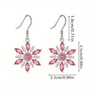 These Christmas and Holiday Creative Red and Silver Shiny Snowflake Earrings feature a festive snowflake pendant shape, perfect for the holiday season. The earrings have a hook closure and are adorned with red crystal stones, giving them a beautiful and shiny look. Ideal for occasions like engagements, weddings, or anniversaries, these earrings also have a Christmas theme and a touch of bohemian or retro style. They would make a perfect gift for Mother's Day, birthdays, or Valentine's Day.