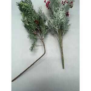 Christmas artificial set of 2 pine pinecones holly berries frosted 25" READ