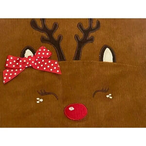 The overall dress is designed with a beautiful reindeer pattern that complements the holiday season. It is pre-owned, but in excellent condition, so you can be sure that you are getting a great product. The dress is perfect for any occasion, whether it’s a family gathering or a Christmas party. Don’t wait any longer, get your little one this amazing Christmas baby girl reindeer overall dress today.