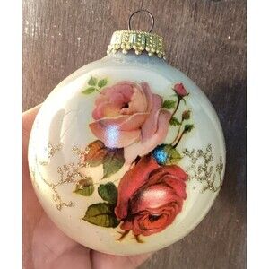 Christmas by Krebs Hand Decorated Glass Ornaments Glitter & Roses Multi Color~4