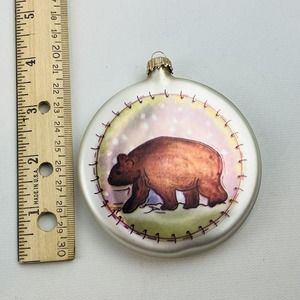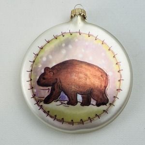 Christmas by Krebs Lakeside Lodge Bear Ornament Box of 2 Disc Glass Leslie Blake