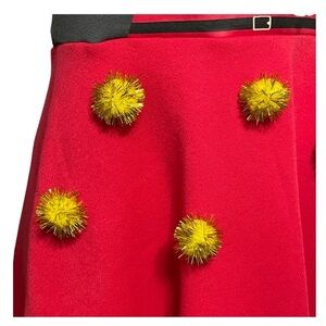 Christmas dress embellished santa golden pom poms red and gray fleece lined