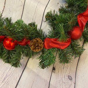 Christmas fireplace Garland Bow Pine cones 9 feet RED