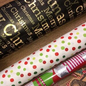 1 new roll wrapping paper; 2 rolls used paper