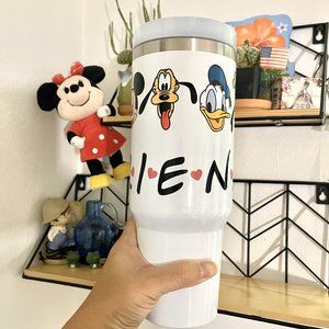 Super cute 30 oz tumbler/coffee & drink Stainless tumbler/water bottle/Mug, it has Mickey, Minnie Mouse, Donald Duck, Pluto, Goofy and Daisy Duck on it.