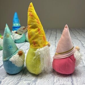 You will receive three new with tags gnomes. These are beanbag gnomes so they have some weight to them. You will receive a small blue, large yellow and small pink