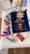 Each Christmas goodie bag is blue velveteen with holiday print on top. Approximately 4 1/2 x almost 6”. Each bag contains same 19 items, BUT, each item is a different color or print from bag to bag. Example, spiral notebooks will have a different cover, Christmas sticky notepad, will have a different Christmas border from the next sticky notepad, keychain whistles will be different colors, the group of 3 hanging ornaments will be different colors & styles, the 2 slap bracelets will have different Christmas patterns, the Chapstick will each be a different print on the outside, & the stretch bracelet will be different colors. You get 2 magnetic book markers, different patterns from bag to bag. You get a travel towel that you can moisten, you get a clip that can be for a keychain or hang onto a bag, 4 travel Emory boards. So each bag is full of the same 19 items, just different colors and patterns.