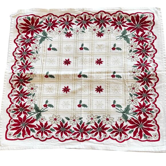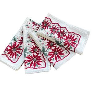 Christmas holiday cotton cloth napkins set of 4 red poinsettias white & green