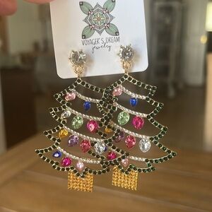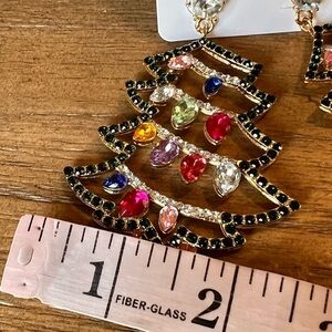 Christmas in July or Christmas this Tree Holiday Drop Earrings Lights Rhinestones Dangle Colored NEW