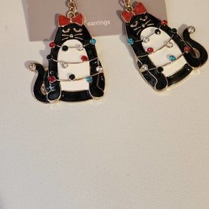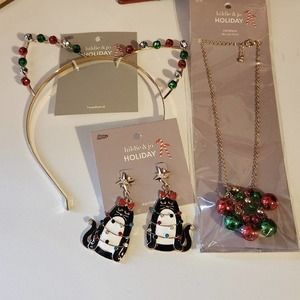 This is a lot of new Christmas items, jingle bell cat ears headband, cats wrapped in lights earrings, and long jingle bell necklace great for an ugly sweater party, work or a gift.
