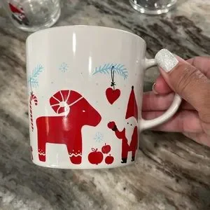 IKEA Christmas kitchen set includes: one eating bowl plate, one mug and 6 small glass cups.