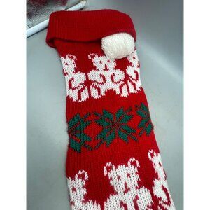 Christmas large stocking knit bear snowflakes red green white 2 hooks 38" READ