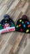 Set of two festive beanies featuring a snowman and holiday lights. Each has a playful pom-pom on top. Light up. Never worn.