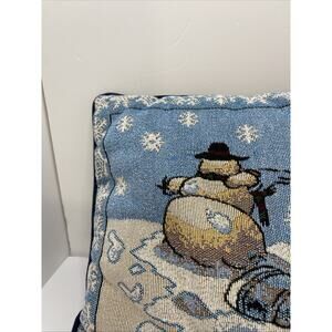 Christmas needlepoint pillow Snowman Family Winter 16” L 12” W