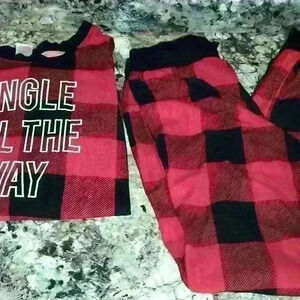 Two-piece unisex Christmas pajamas black white red plaid size extra small long sleeve and pants. smoke free pet free no stains no rips no tears