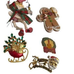 Christmas pins 5 Brooch Lot Santa Christmas Sleigh Candle Gingerbread Holiday Party