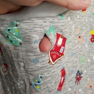 New with tags. Soft gray material with small Christmas themed graphics throughout. Hole in back for leash. Velcro closure.
