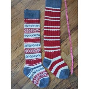 Christmas red and green stripe knit stockings set