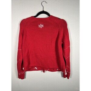 This Christmas snowman "ugly" sweater cardigan is a festive addition to any woman's holiday wardrobe. The red color and Christmas theme make it perfect for spreading holiday cheer, while the cardigan style adds a touch of warmth and comfort. Despite being labeled as "ugly," this sweater is sure to be a fun and colorful choice for any Christmas gathering.