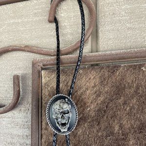 Sugar Skull Cameo Pendant Bolo Necklace Lariat Tie Gothic Rockabilly Biker Gift